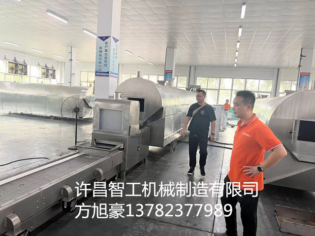 2024年8月23日,福建客户来厂考察许昌智工八米电磁流水线炒制原味瓜子。