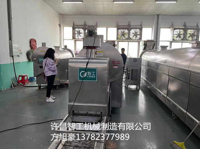 4月25日,四川客户一行三人来到许昌智工机械制造有限公司考察电磁炒瓜子设备。